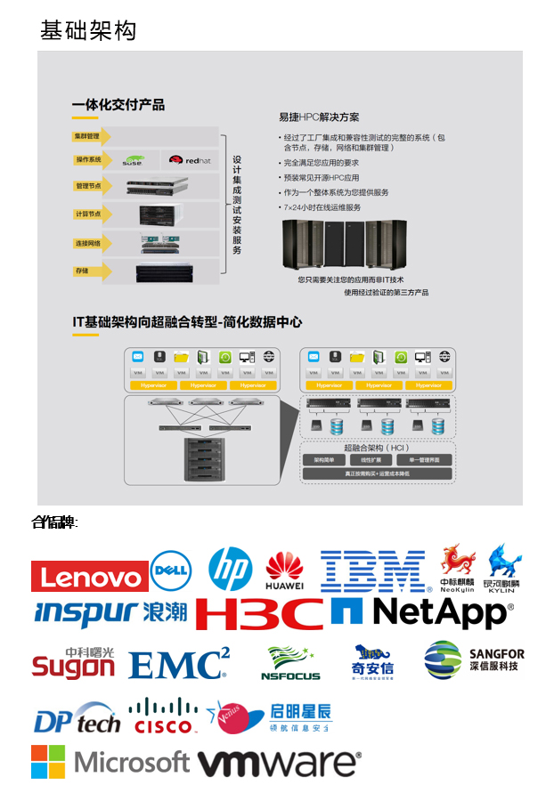 2、企業(yè)客戶(hù)IT解決方案。基于全球一流IT廠(chǎng)商的資源,為客戶(hù)量身打造專(zhuān)業(yè)化基礎(chǔ)架構(gòu)解決方案;基于打印為基礎(chǔ)為客戶(hù)提供更加合理的智能打印服務(wù);基于騰訊會(huì)議以及MAXHUB為專(zhuān)業(yè)音視頻系統(tǒng)為客戶(hù)提供智能會(huì)議解決方案;基于騰訊云、華為云服務(wù)為企業(yè)級(jí)提供更加合適的云服務(wù)。目前所代理的廠(chǎng)商及產(chǎn)品有:浪潮小型機(jī)及服務(wù)器、HP全系列產(chǎn)品(桌面、服務(wù)器、打印)、聯(lián)想全系列(桌面、服務(wù)器、打印、移動(dòng)設(shè)備)、華為服務(wù)器、MAXHUB會(huì)議系統(tǒng)、騰訊云、華為云等產(chǎn)品。服務(wù)的客戶(hù)涵蓋金融、制造、教育、醫(yī)療、互聯(lián)網(wǎng)以及企事業(yè)單位。